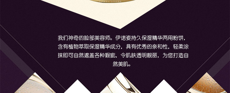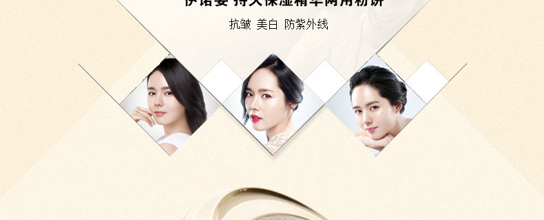 韓國(guó)進(jìn)口 伊諾姿 持久保濕精華兩用粉餅 21號(hào) 10g 抗皺 美白 防紫外線 —— 1 含有植物萃取保濕精華成分,具有優(yōu)秀的親和性 2 自然融化后服帖于面部,自然,輕薄,令肌膚如絲般光滑 3 可自然遮蓋各種瑕疵,使肌膚具有透明感 |