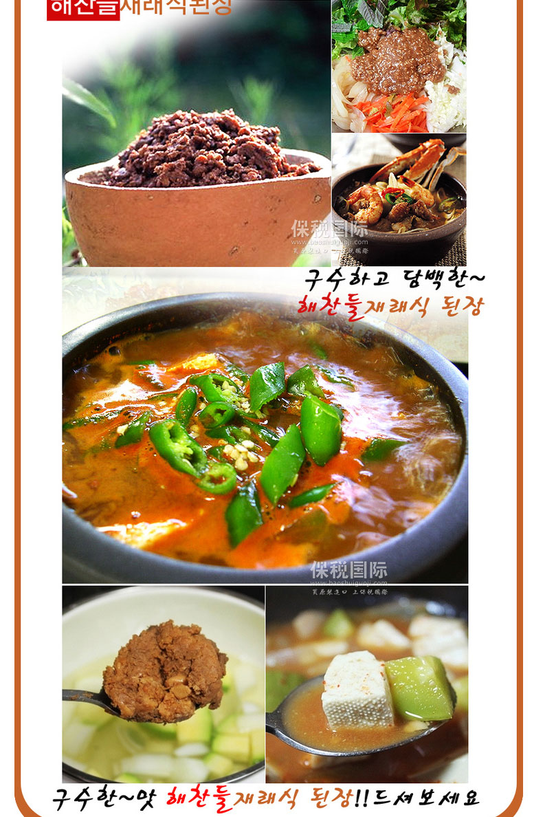 韓國(guó)式醬湯 好餐得傳統(tǒng)大醬 噴香清淡 細(xì)膩純正 1000g/盒—— 1.純化古老大醬特有的香味和味道將傳統(tǒng)的韓式醬曲大醬和用改良方法制作的大醬相混合,形成純化古老大醬特有的香味和味道的產(chǎn)品。 2.用低溫發(fā)酵(10℃-20℃)進(jìn)行第2次發(fā)酵將大醬用低溫發(fā)酵技術(shù)(10℃-20℃)進(jìn)行第2次發(fā)酵,激發(fā)細(xì)膩而又深厚的味道。在煮湯時(shí)釋放噴香的味道和香味,不甜不咸,符合我們的口味。 3.存放和使用的便利性為了在冰箱存放和使用的便利采用易拉罐型包裝。 |
