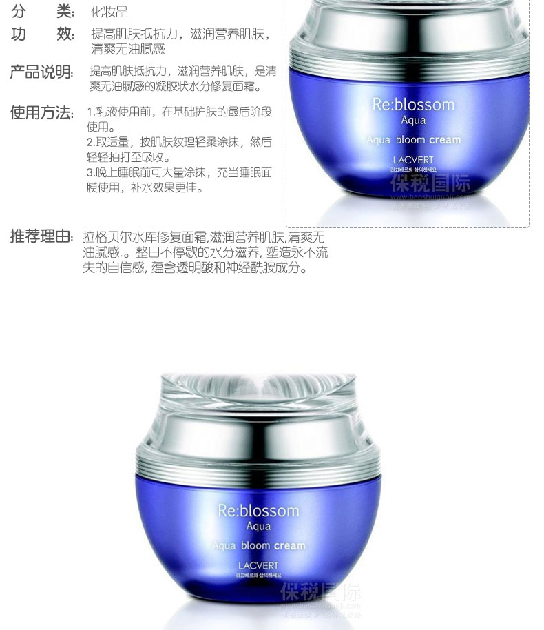 拉格貝爾水庫修復面霜 滋潤營養肌膚 清爽無油膩感 50ml/瓶 |