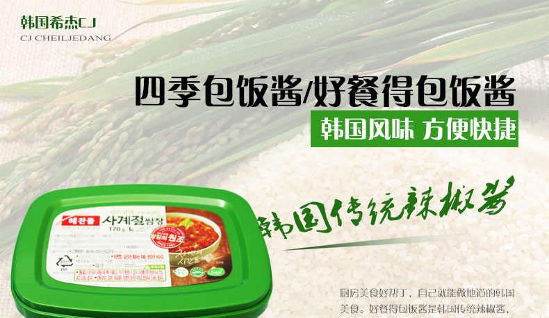 四季包飯醬/好餐得包飯醬 韓國風(fēng)味 獨(dú)立包裝 方便快捷 170g/盒 1盒 |