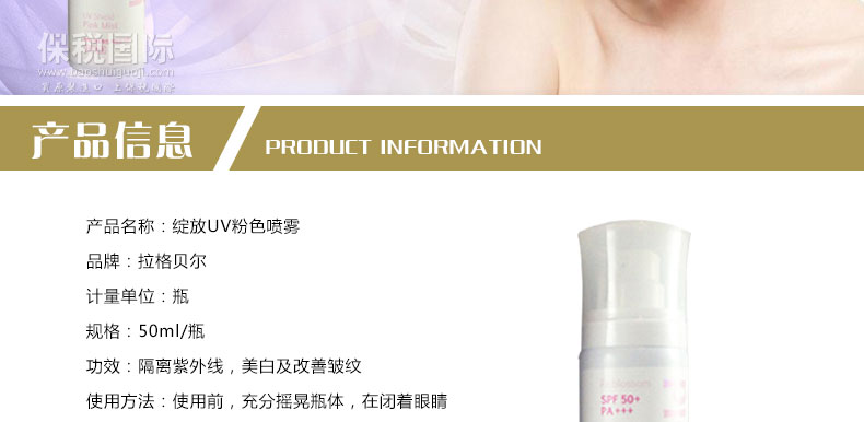 拉格貝爾 綻放UV粉色防曬噴霧 多重美白 極致護膚 50ml/瓶 |