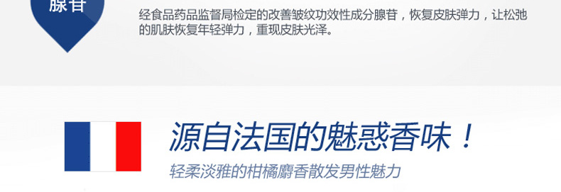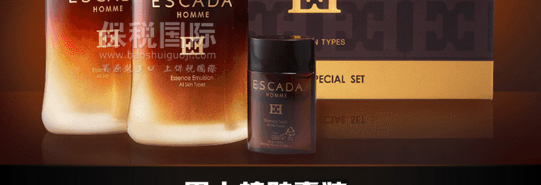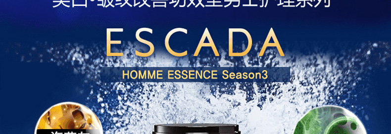 ESCADA艾斯卡達男士精華系列3水乳2件套 美白抗皺 鎮靜保濕 煥顏醒膚(內附贈品)?—— 1.海藻發酵精華(海草灰,小球藻)幫助長期因受壓力,環境污染和生活方式的改變而受損的皮膚重新恢復平衡,讓您擁有健康活力肌膚。 2.神經酰胺增強皮膚自我保護功能,阻隔外部環境對皮膚的侵害,給缺失生機的肌膚賦予彈力。 3.經食品藥品監督局檢定的美白功效成分煙酰胺,可提亮膚色,改善皮膚暗沉。 4.經食品藥品監督局檢定的改善皺紋功效成分腺苷,恢復彈力,讓松弛的肌膚恢復年輕彈力,重現皮膚光澤。 |