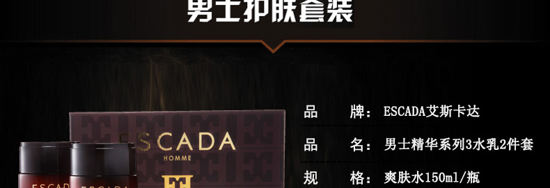 商品名稱 | ESCADA艾斯卡達男士精華系列3水乳2件套 美白抗皺 鎮靜保濕 煥顏醒膚(內附贈品)? | ||