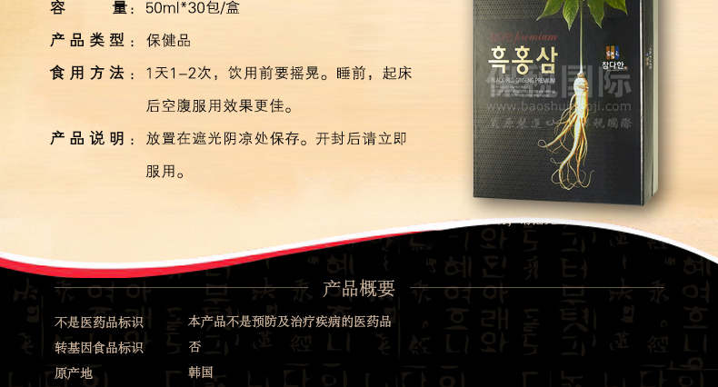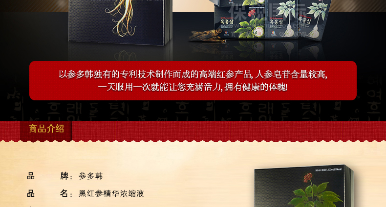 參多韓黑紅參名品版 黑紅參精華濃縮液 韓國6年根高麗參紅參人參 |