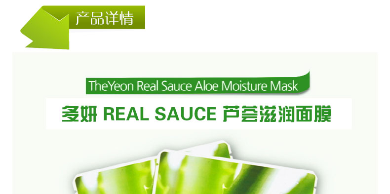 商品名稱 | 多妍 real sauce 蘆薈滋潤面膜 保持肌膚水潤 鎮定肌膚 打造健康肌膚 22ml*20片裝 | ||