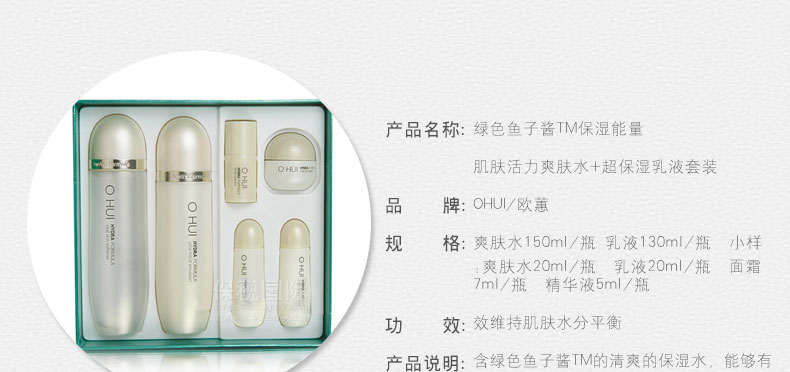 商品名稱 | OHUI歐蕙 綠色魚子醬TM 肌膚活力爽膚水+超保濕乳液套裝 清爽保濕 潤澤肌膚 | ||