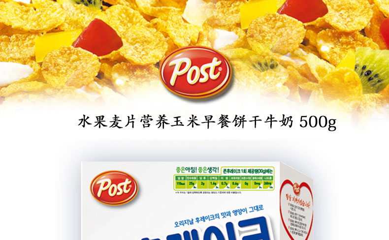 東西Post水果麥片營養(yǎng)玉米早餐餅干牛奶 香甜低糖 老少皆宜 500g/盒??——