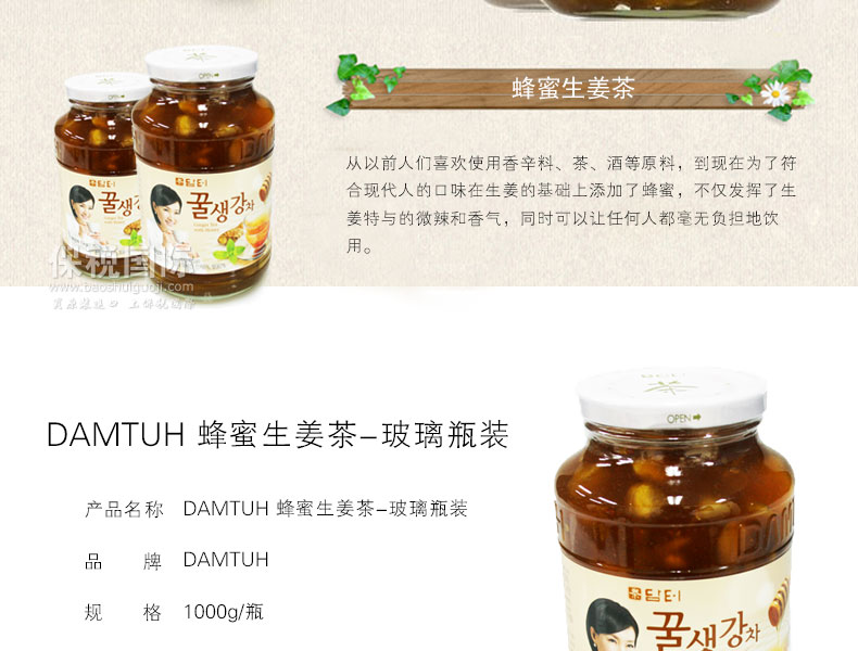 商品名稱 | DAMTUH 蜂蜜生姜茶-玻璃瓶裝 獨特清香 保健功效 1000g/瓶 | ||