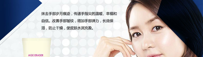 1.手部皺紋管理同臉部皺紋管理同等重要, 本產(chǎn)品能夠滋潤手部肌膚,改善手部皺紋, 增加手部肌膚彈力 |