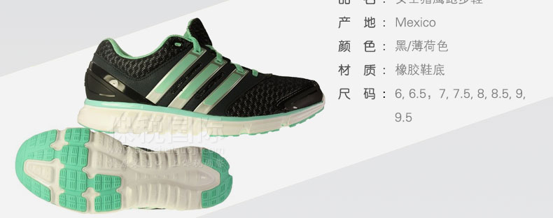 Adidas阿迪達斯 女士獵鷹跑步鞋舒適網鞋運動鞋 黑/薄荷色—— ①ADIWEAR耐磨橡膠鞋底。 ②透氣網眼,平穩緩沖墊。 ③側面成型工藝更加穩鍵輕盈。 |