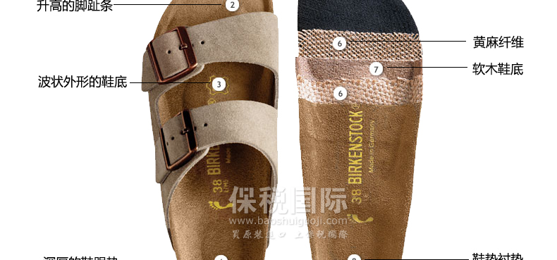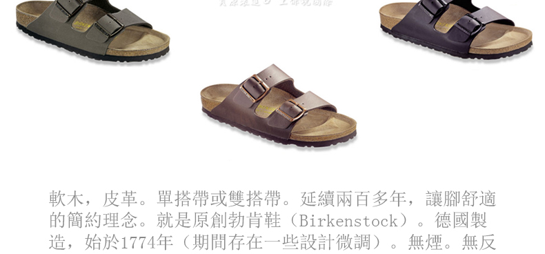 德國[勃肯]米蘭 / 亞利桑那經典雙搭足跡舒適涼鞋 防滑柔軟耐磨 沙灘涼拖鞋 正品直郵—— 1.附有兩個可調搭鞋帶和牢固的支撐鞋墊。 2.保護腳趾,幫助交織做按摩運動,依據腳弓自然造形而設計, 提供完美的支撐。 3.鞋跟尺寸大約為2.54 cm,平底尺寸大約為 1.27 cm。 4.德國Birkenstock 勃肯在200多年的家族傳承的基礎上形成獨步全球的制鞋理論與技術。 |