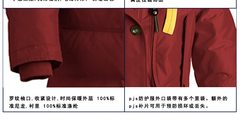 ParaJumpers Women's Kodiak Eco Long Parka女士長款羽絨服 優質面料 保暖抗寒 三色可選 —— 1.100%尼龍外層,100%滌綸襯里,90%絨毛襯墊。 2.pjs防護服外口袋帶有多個里袋。額外的pjs補片可用于預防損壞或丟失。 3.風帽周圍的毛皮裝飾是產自加拿大的郊狼毛,風帽的毛皮襯里是野兔毛。 4.正前面拉鏈由YKK吉田拉鏈提供。 |