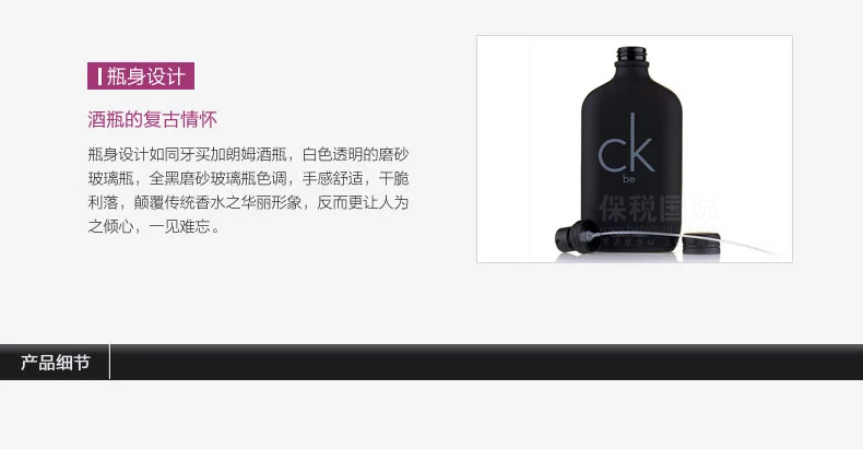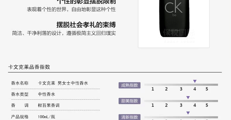 產(chǎn)品說明 Calvin Klein CK BE 卡文克萊 男女士柑苔果中性香水 100ml黑瓶 ——