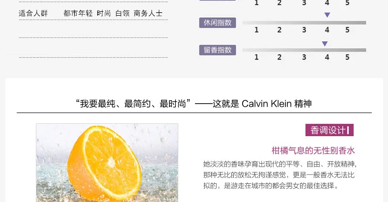 CK BE中性香水散發(fā)出性感撩人的芳香,詮釋著自我與私密之意,讓人不禁上前一睹芳貌。柑苔果香釋放著清新與純凈的香氛,讓人無法自拔深陷其中。這一抹香氣讓擁有者與眾不同,盡顯個(gè)性。