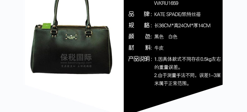 凱特·絲蓓 Kate Spade 橫款硬皮 女士單肩手提殺手包 WKRU1659—— 1.因具體款式不同存在0.5kg左右的重量誤差。 2.由于測量手法不同,誤差1-3厘米屬于正常范圍。 |