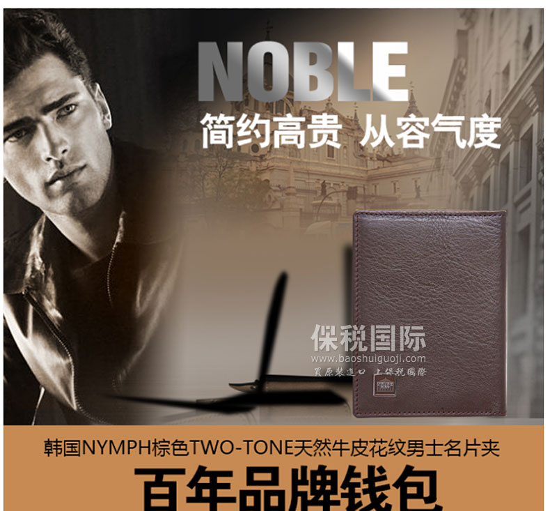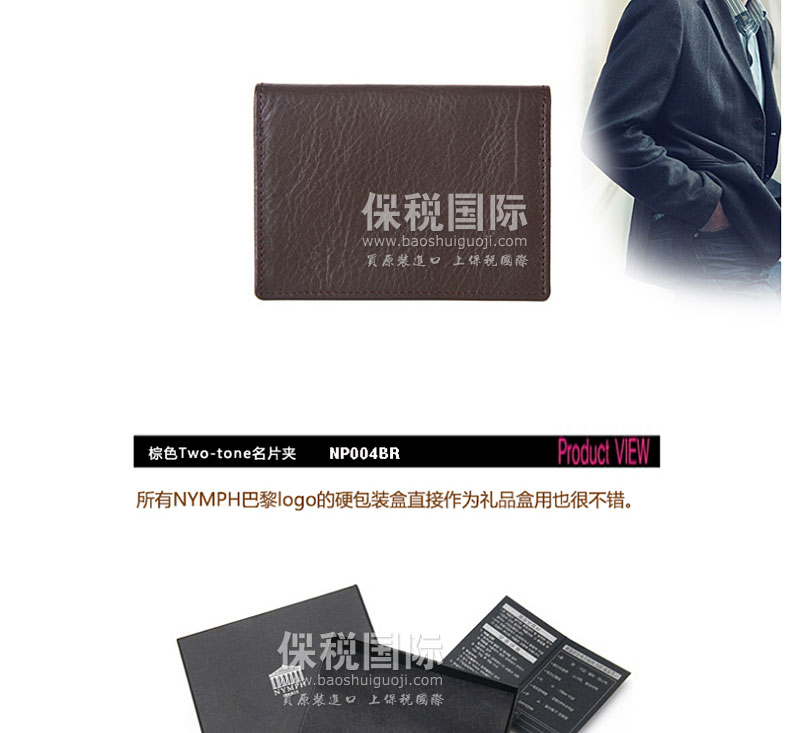 商品名稱 | 韓國NYMPH棕色TWO-TONE天然牛皮花紋男士名片夾 | ||