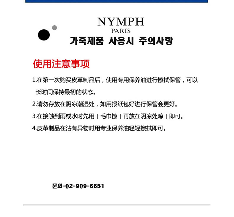 | 品 牌 | 韓國NYMPH | 材 質 | 韓國天然皮革 | |