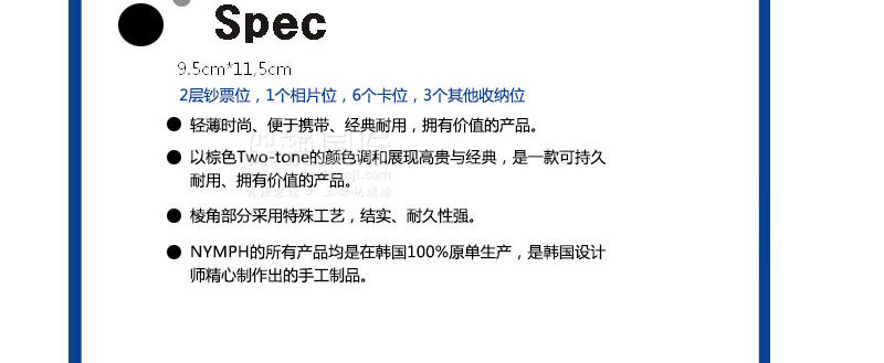 | 品 牌 | 韓國NYMPH | 材 質 | 韓國天然皮革 | |