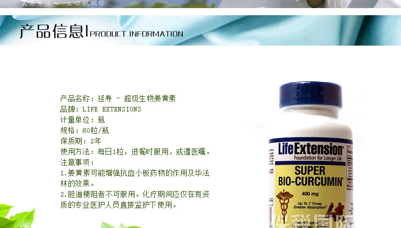 商品名稱 | Life Extensions延壽 超級生物姜黃素400毫克 - 60粒素食膠囊 | ||