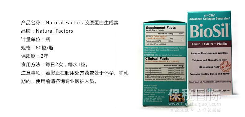 Natural Factors ?BioSil ch-OSA 高級膠原蛋白生成素 60粒/瓶 |