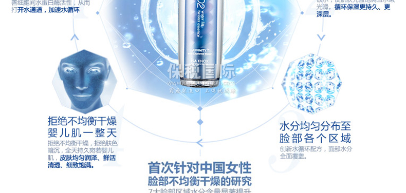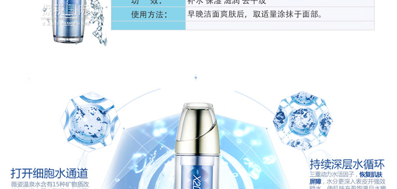 1 含有三種專利成分,涂抹瞬間即可感受水潤感,打造滋潤有彈力的肌膚。 使用方法:早晚潔面爽膚后,取適量涂抹于面部。 |