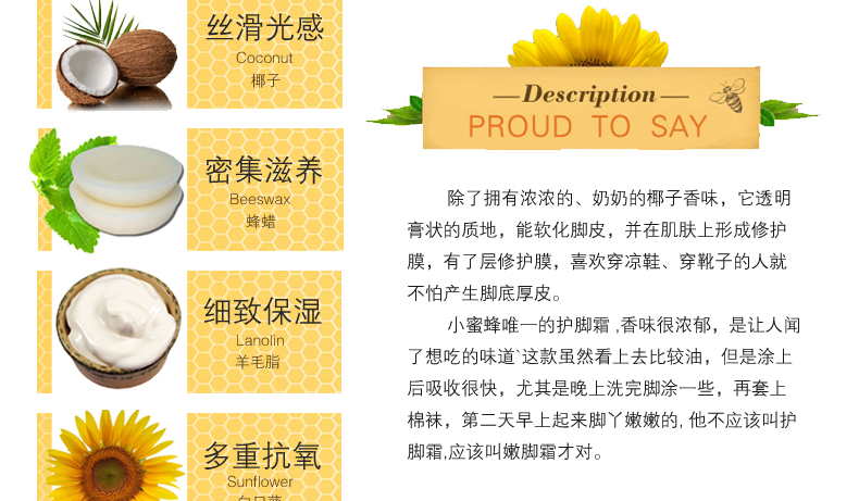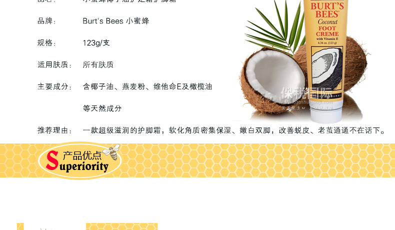 Burt's Bees 小蜜蜂椰子油護(hù)足霜/護(hù)腳霜 溫和滋潤 保濕防干裂 123g/支 ——