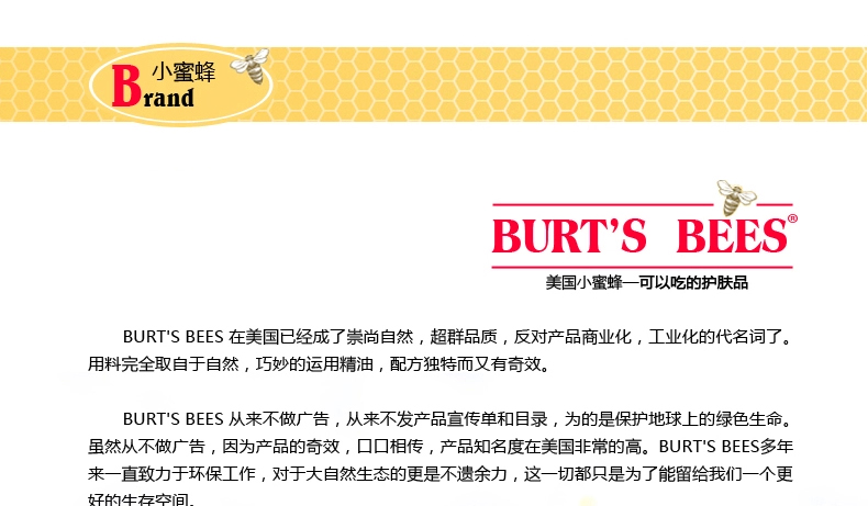 | 品 牌 | 美國 Burt's Bees/小蜜蜂 | 規(guī) 格 | 123g/支 | |