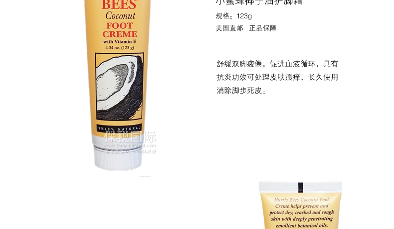 Burt's Bees 小蜜蜂椰子油護(hù)足霜/護(hù)腳霜 溫和滋潤 保濕防干裂 123g/支 |