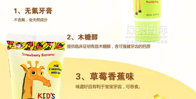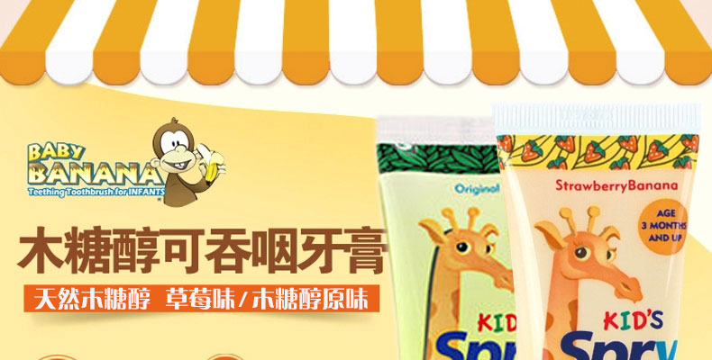 Baby Banana香蕉寶寶 木糖醇護齒無氟安全可吞咽嬰幼兒牙膏 60ml/支——