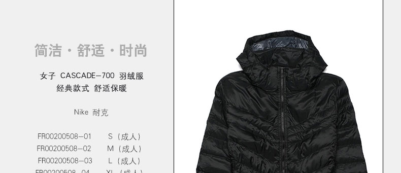 商品名稱 | NIKE 耐克 女子 CASCADE-700 羽絨服 經典款式 舒適保暖 | ||