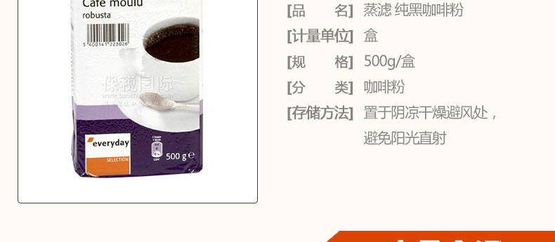 商品名稱 | 比利時 Everyday 蒸濾特香咖啡粉 純黑咖啡粉 500g/盒 | ||