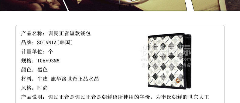 商品名稱 | 【SOTANIA】 訓民正音高級實用型男士短款錢包 | ||