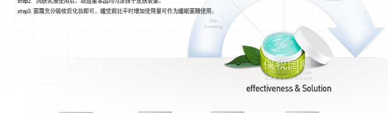 1.含有植物提取物,鎮靜敏感、易失水的肌膚,Na-Hyauonte等成分,長效補水。 |