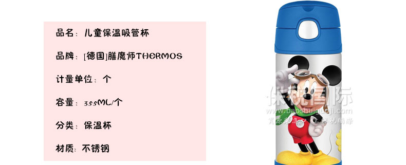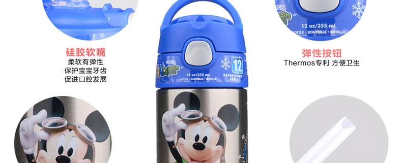 Thermos 膳魔師 米奇圖案兒童保溫杯 創意兒童吸管杯 不銹鋼材質 美觀精致更好用 355ml |