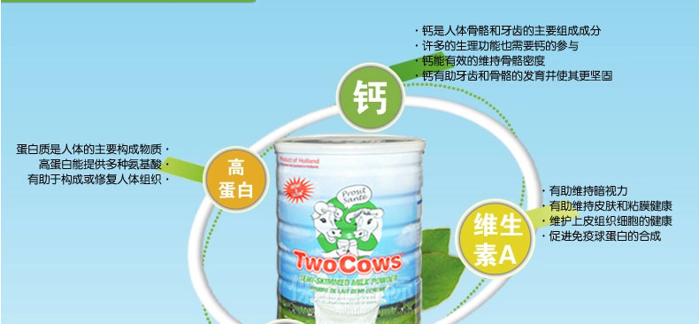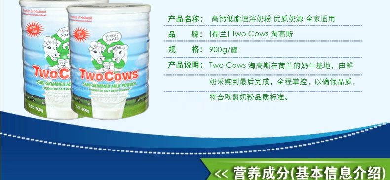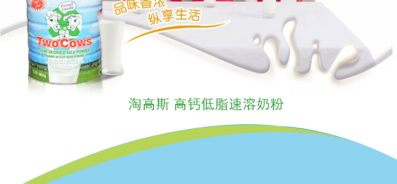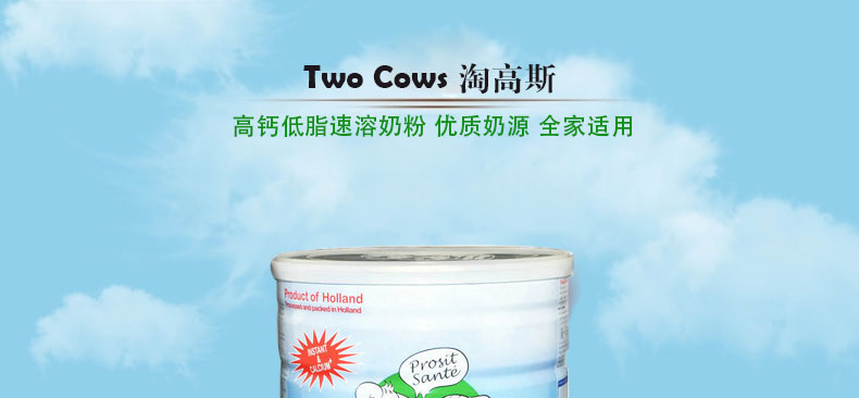 荷蘭 Two Cows 淘高斯 高鈣低脂速溶奶粉 優(yōu)質(zhì)奶源 全家適用 900g/罐 |