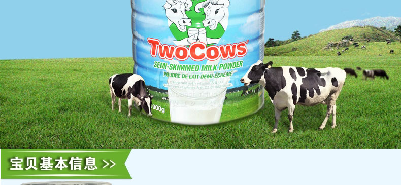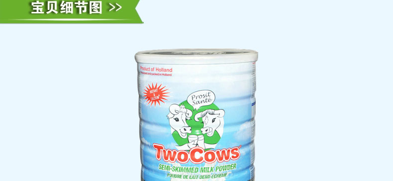 荷蘭 Two Cows 淘高斯 高鈣低脂速溶奶粉 優(yōu)質(zhì)奶源 全家適用 900g/罐——
