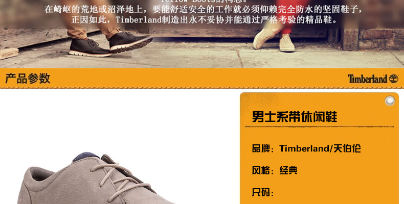 Timberland/天伯倫男鞋新品 系帶休閑鞋 ?優(yōu)質(zhì)磨砂皮革鞋面 |
