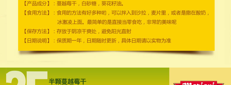美國(guó) Mariani瑪莉安妮 爽口不膩 純天然半顆蔓越莓干 170g |