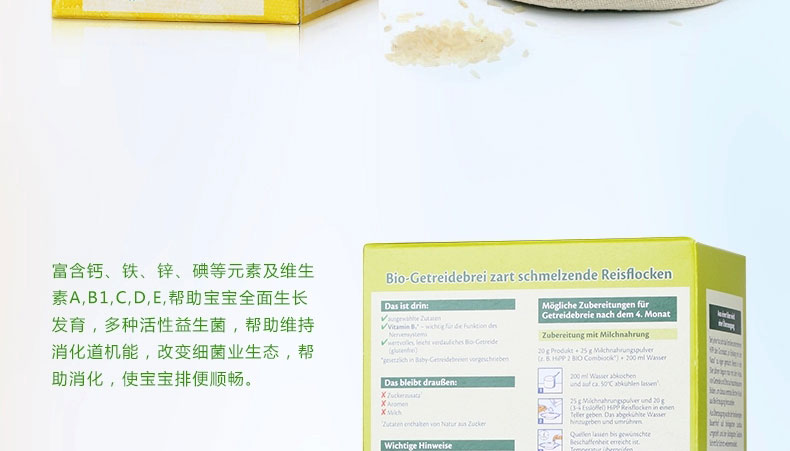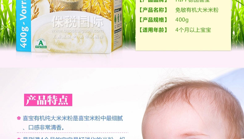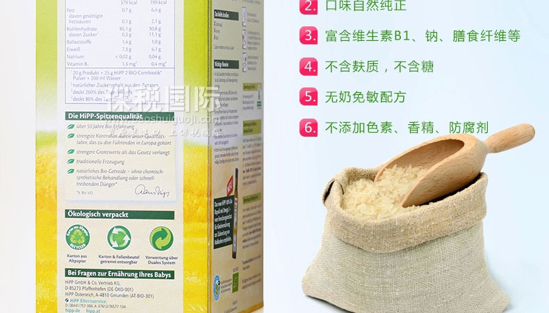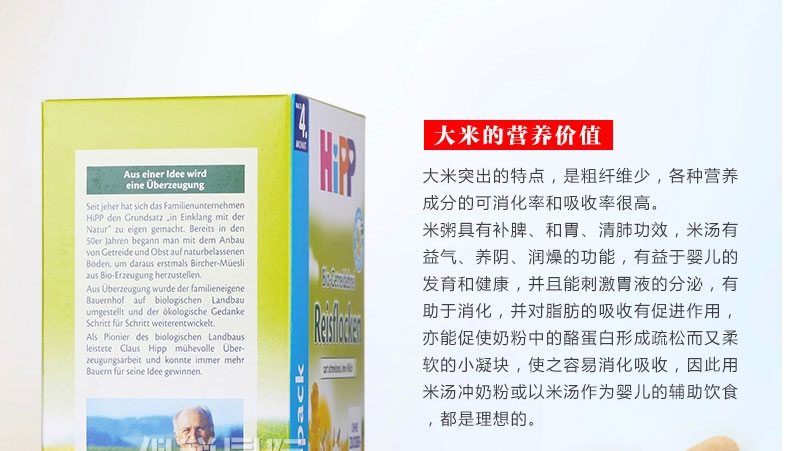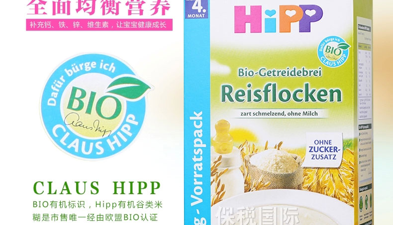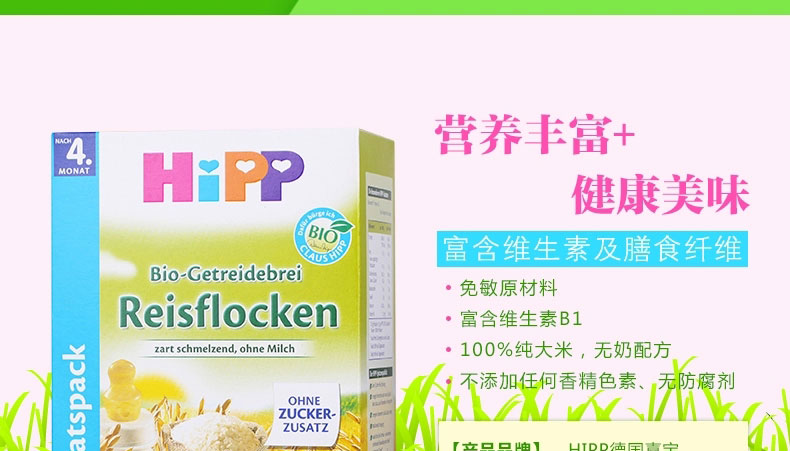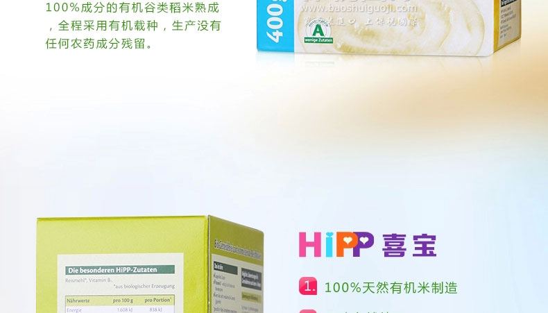 德國 Hipp 喜寶 有機免敏純大米米粉益氣養陰 潤燥 有助于消化 對脂肪有促進吸收 400g/盒 |