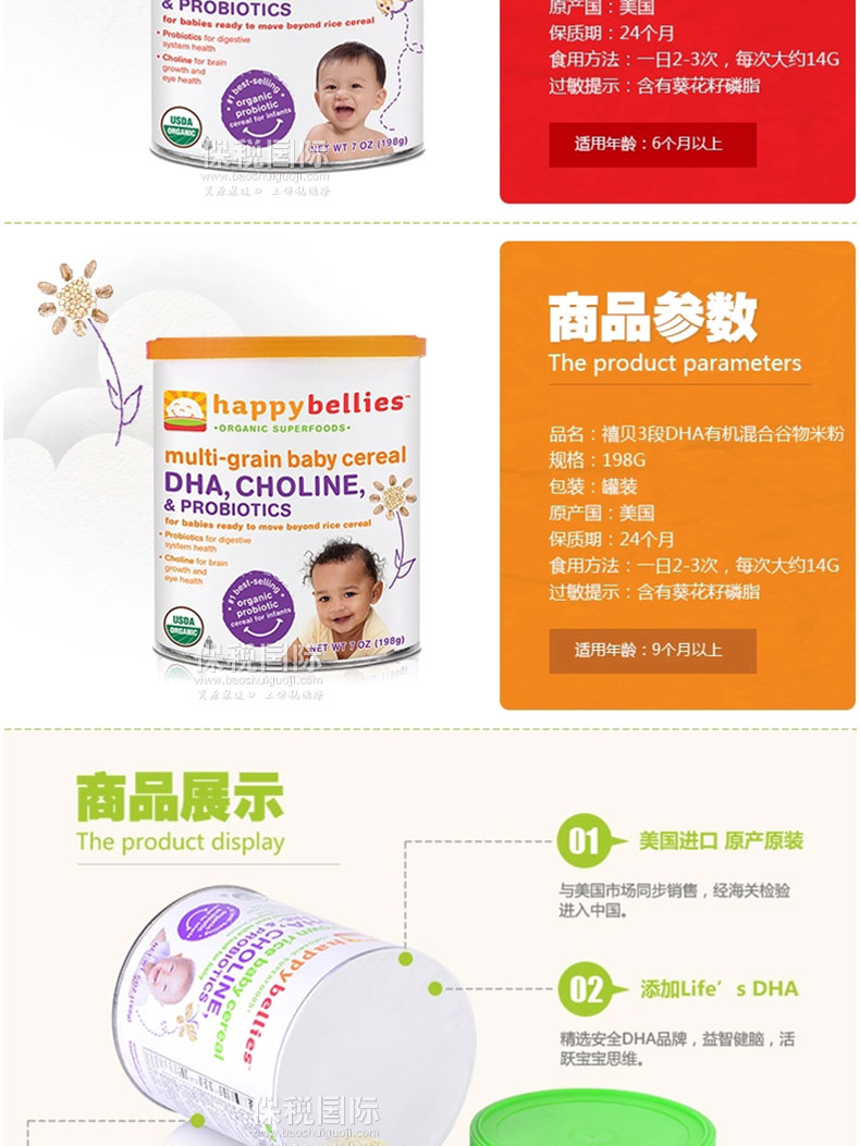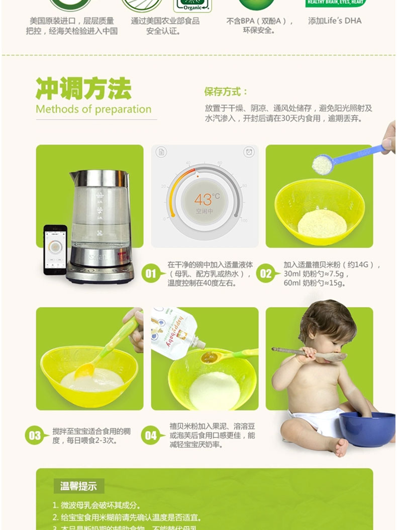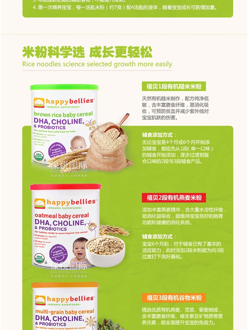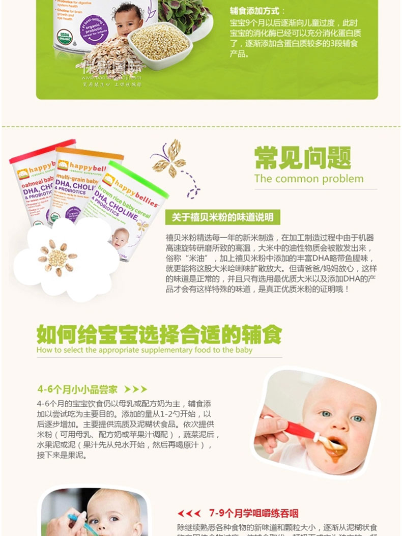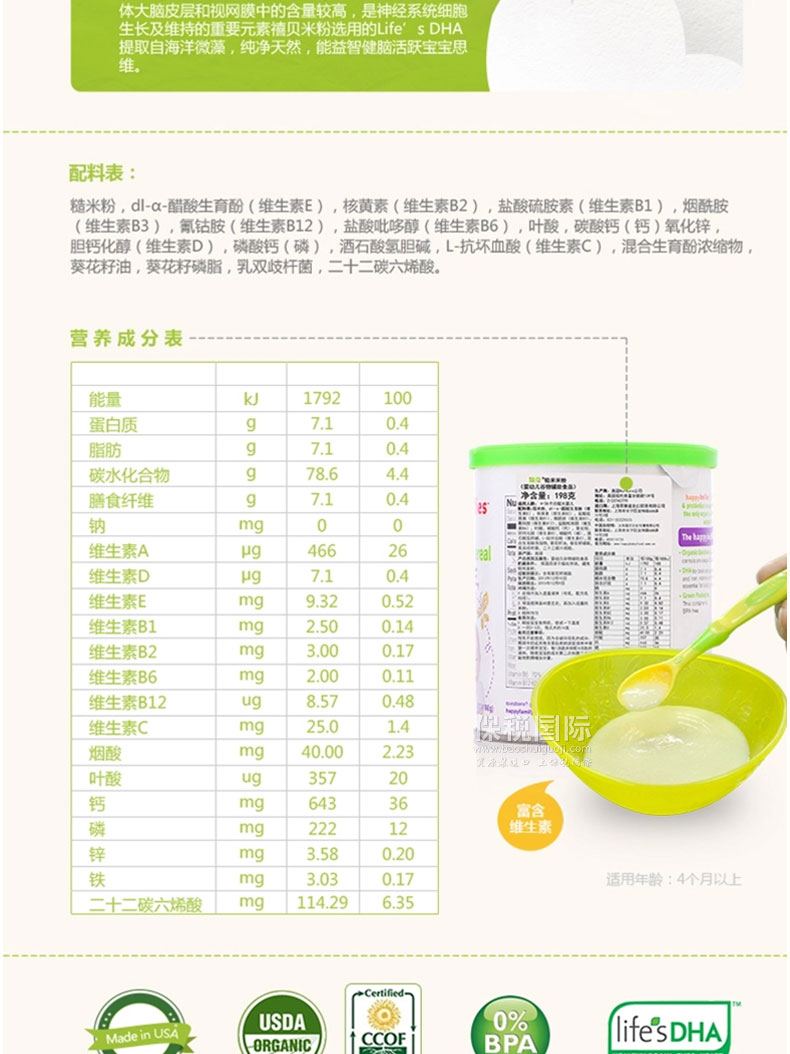 2.富含多種礦物質和維生素b、c、e,不含小麥豆類等過敏成分,寶寶健康成長。