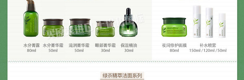 Innisfree悅詩風吟100%天然綠茶精粹滋潤保濕精華露(滋潤型)補水保濕抗敏感控油 50ml/瓶——