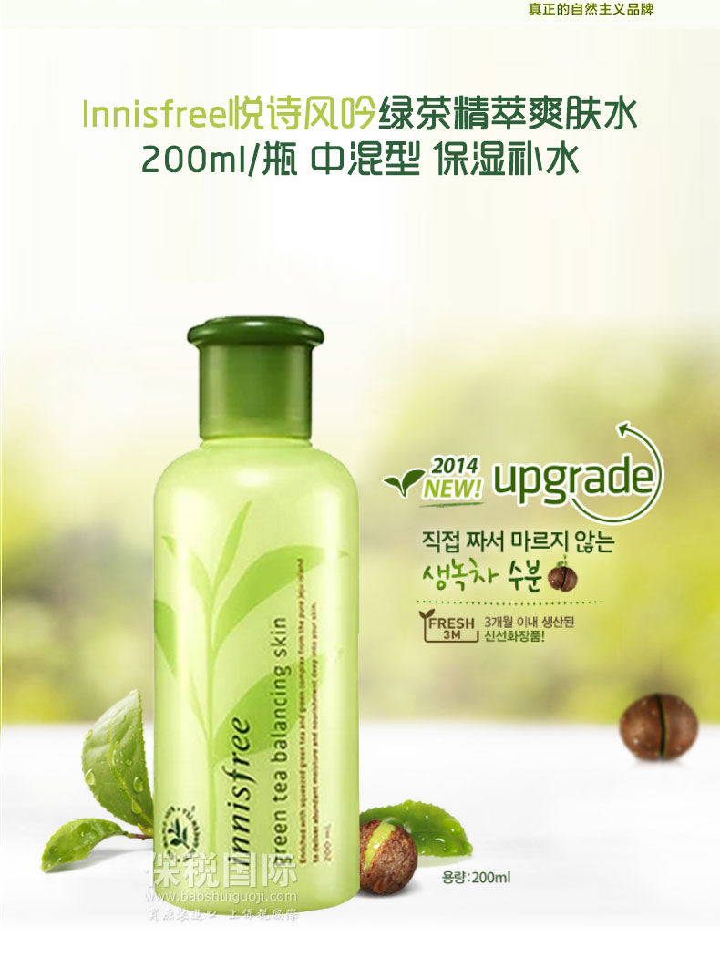 Innisfree悅詩風吟綠茶精萃爽膚水200ml/瓶 中混型 保濕補水——
