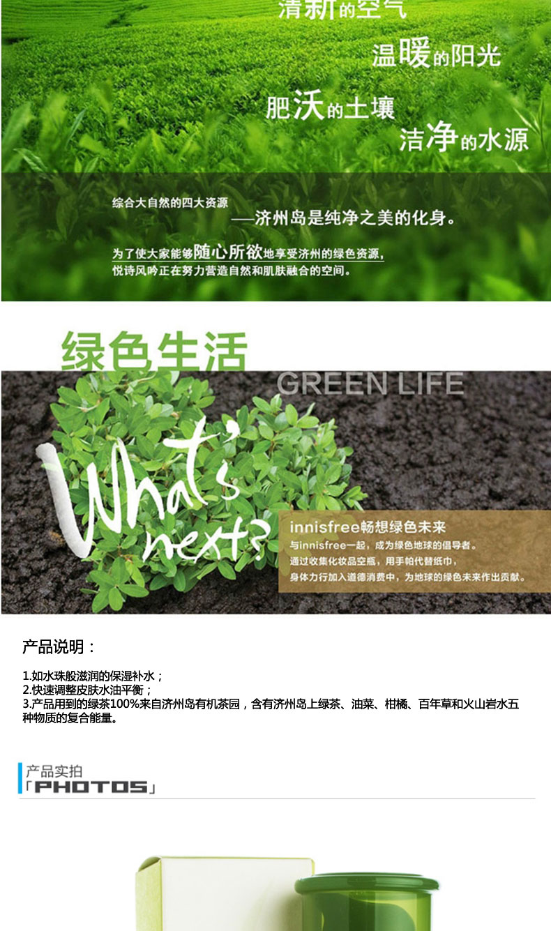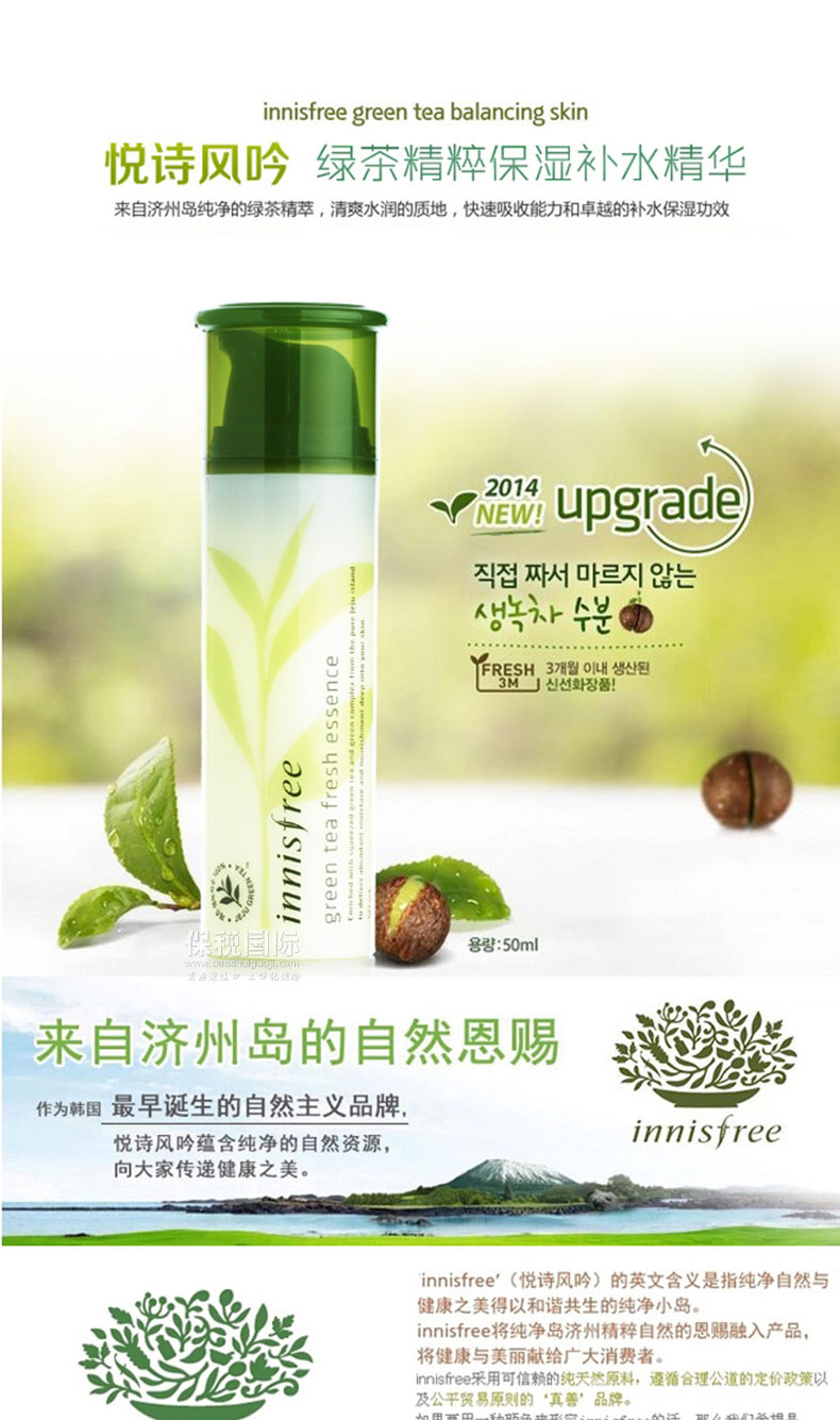 innisfree悅詩風吟綠茶精萃清潤精華露 清爽型保濕補水精華50ml/瓶 快速調整皮膚水油平衡 |
