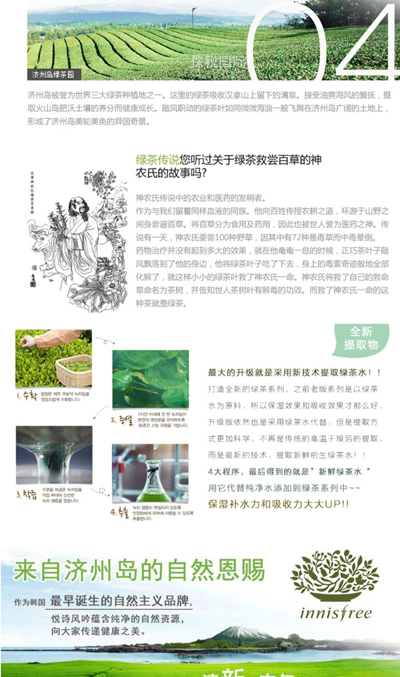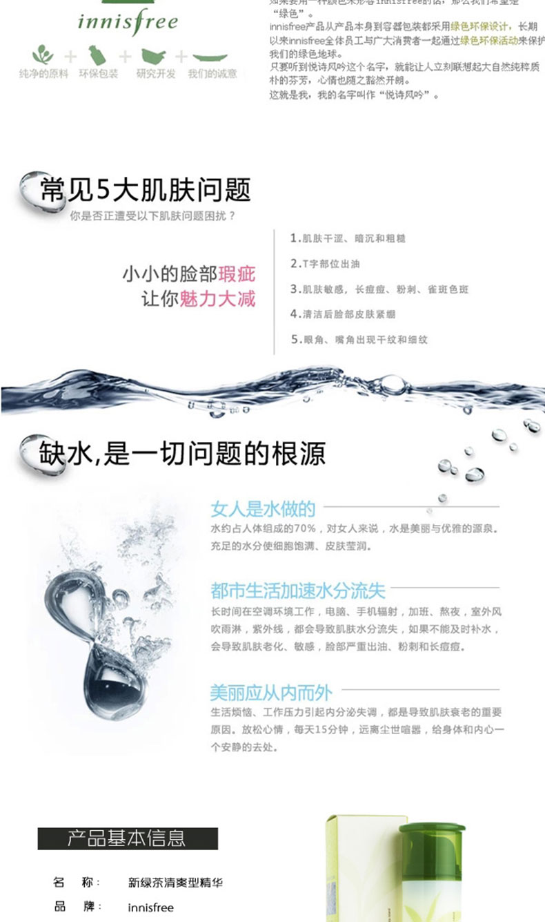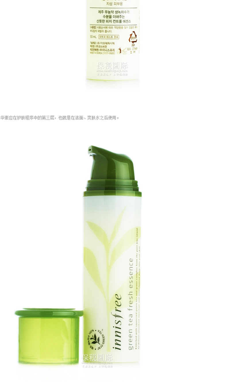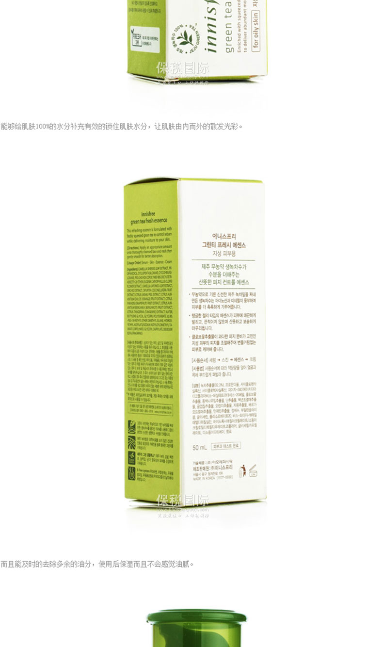 innisfree悅詩風吟綠茶精萃清潤精華露 清爽型保濕補水精華50ml/瓶 快速調整皮膚水油平衡——