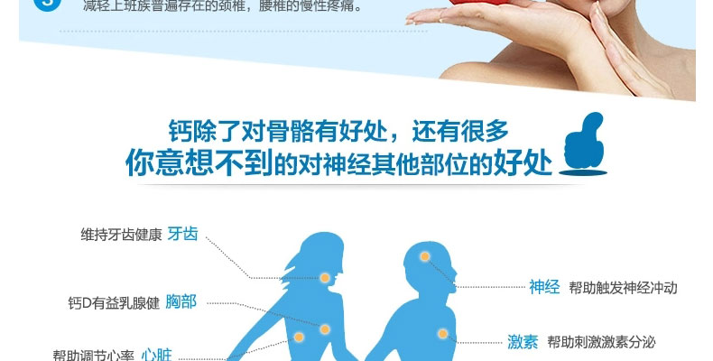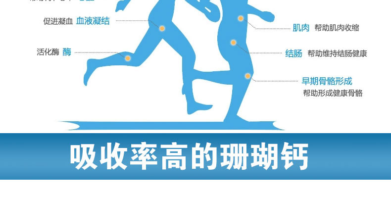 1.目前吸收率高的有機鈣。 用法用量:成人建議用量每天3次,每次1粒。 |