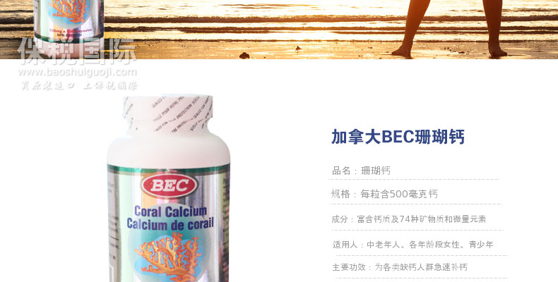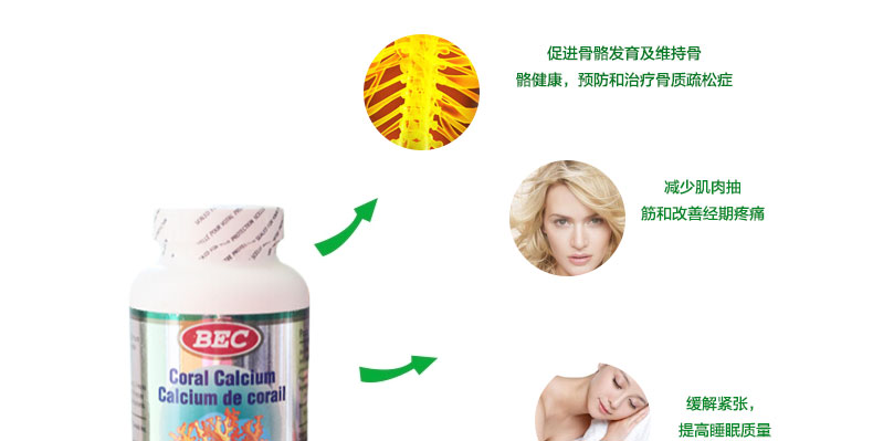 加拿大BEC 珊瑚鈣 鈣質豐富 補鈣保健品每粒含鈣500毫克 |
