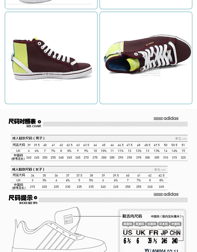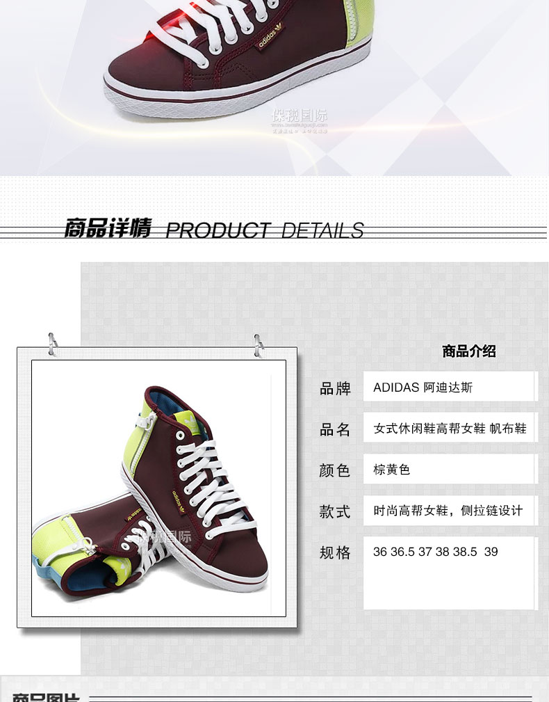 阿迪達(dá)斯Adidas三葉草2014新款女式休閑鞋M20785 高幫女鞋 帆布鞋—— 1.時尚高幫女鞋,側(cè)面拉鏈設(shè)計,穿著方便。 2.優(yōu)質(zhì)面料,穿著舒適,經(jīng)久耐穿。 3.人體工程學(xué)設(shè)計風(fēng)格有效減少足部疲勞感。 |