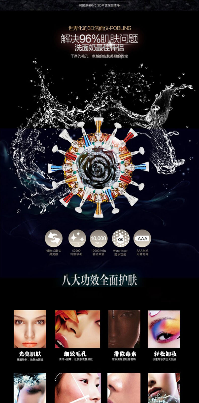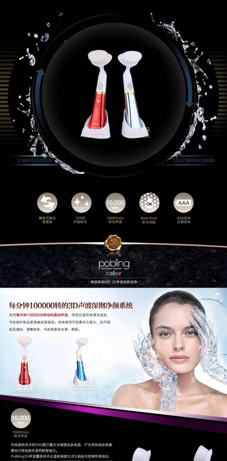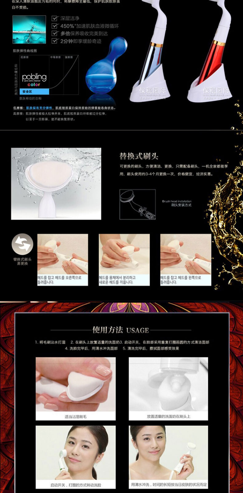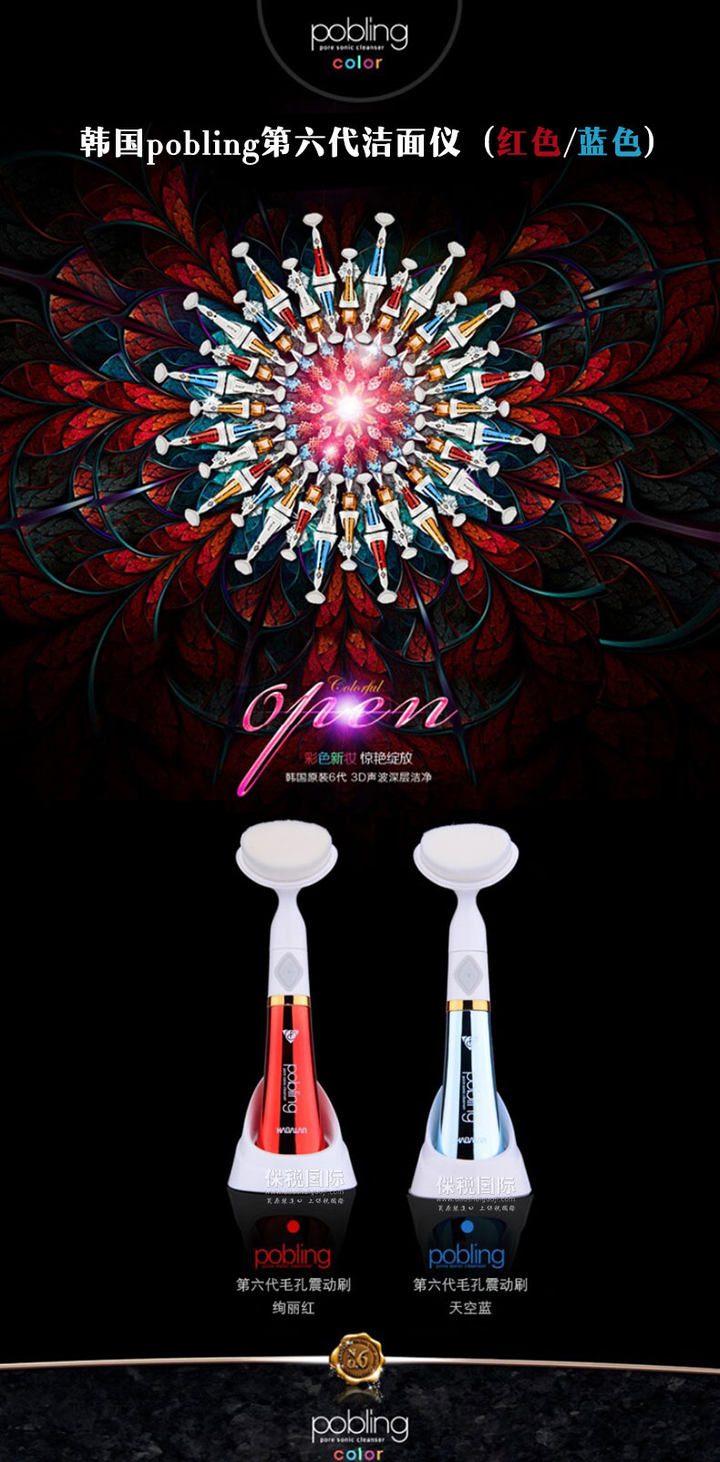 韓國 pobling第六代電動洗臉神器潔面儀 毛孔清潔器 聲波洗臉儀(紅色/藍色) |