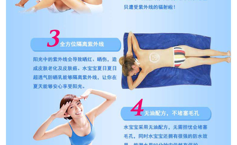 1. 防曬霜跟一般的護膚用品一樣,需要一定時間才能被肌膚吸收,所以出門前10~20分鐘應涂防曬霜,而去海灘前30分鐘就應涂好。 |