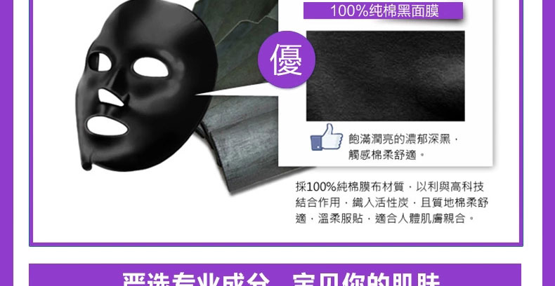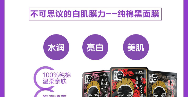 SEXYLOOK極美肌 純棉黑面膜 奔跑吧兄弟angelababy同款 水潤/亮白/修護(28ml/片*5) |